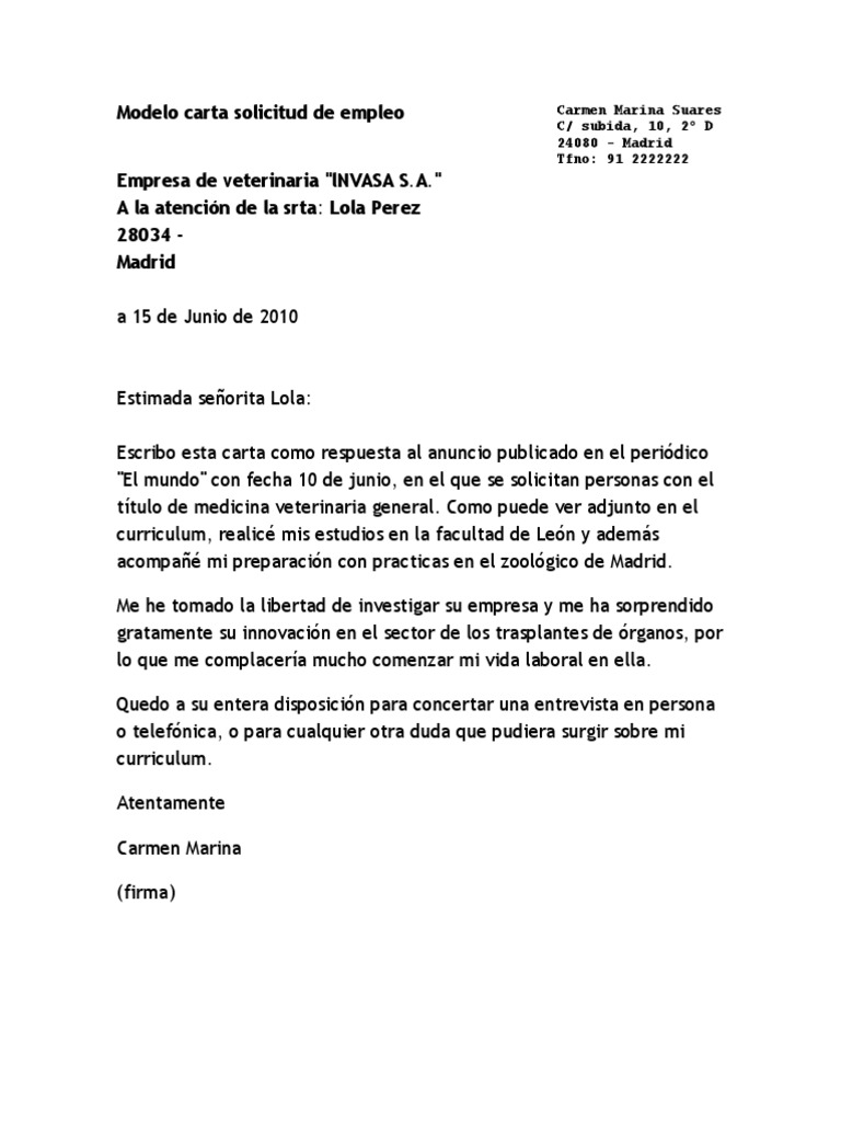 Modelo Carta Solicitud De Empleo.docx via es.scribd.com